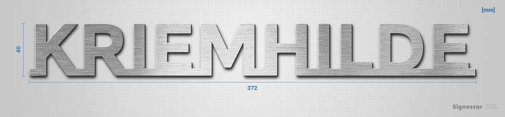 Schriftzug "Kriemhilde" in Schriftart "Baseline", Edelstahl V2A gebürstet - hochwertig & wetterbestä