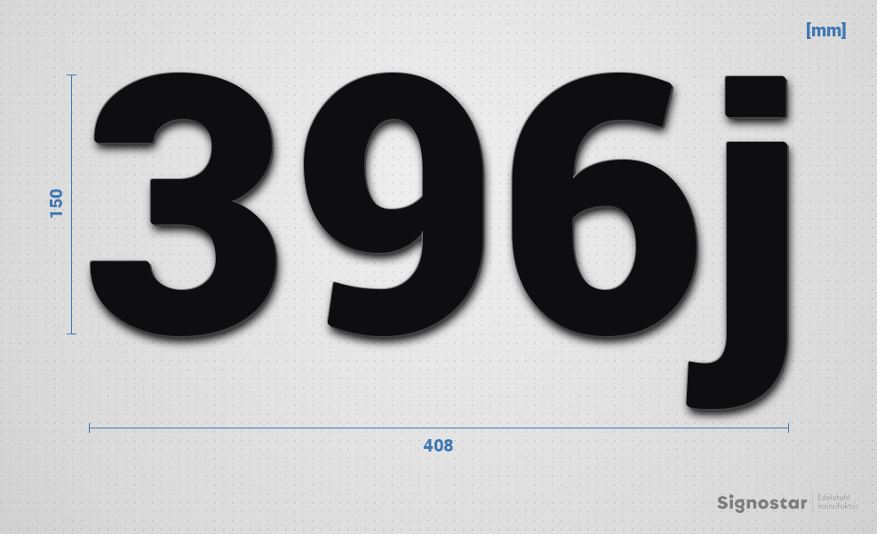 Schriftzug "396j" in Schriftart "Sans", Edelstahl V2A pulverbeschichtet - hochwertig & wetterbeständ