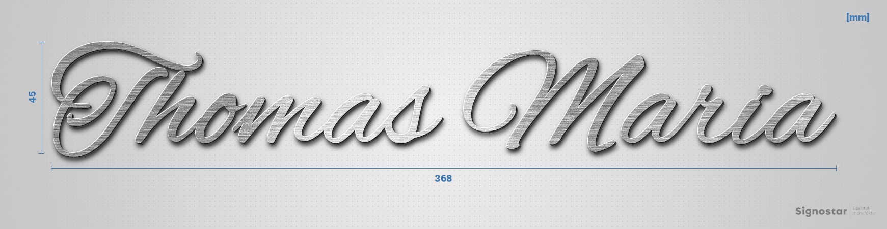Schriftzug "Thomas Maria" in Schriftart "Jessari", Edelstahl V2A gebürstet - hochwertig & wetterbest