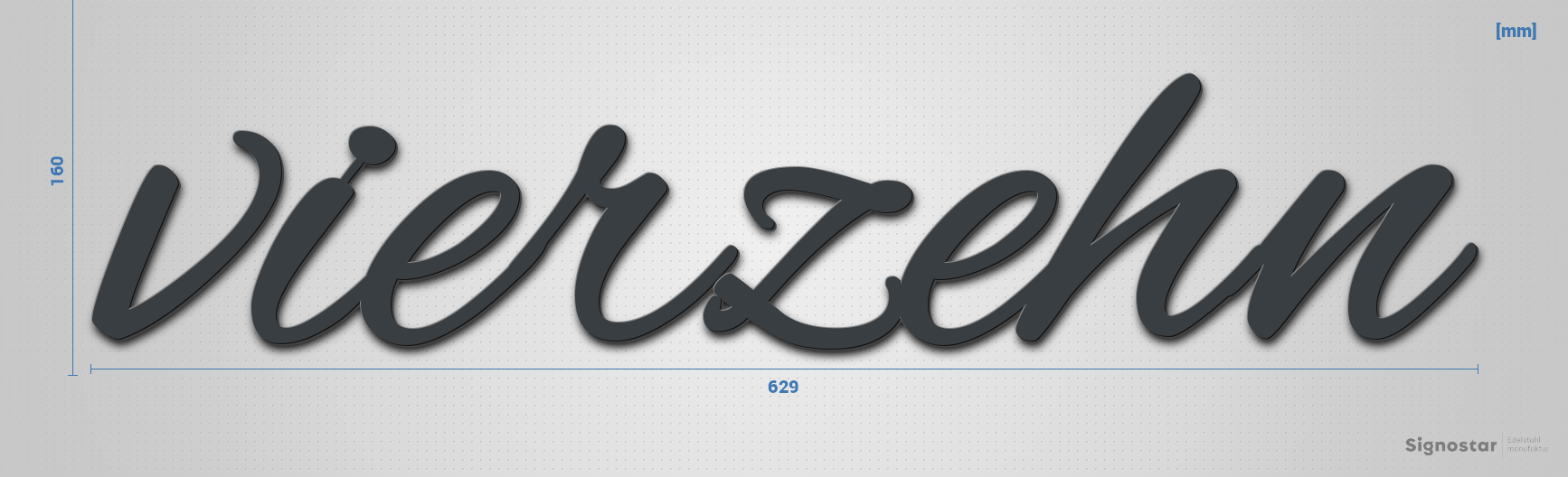 Schriftzug "vierzehn" in Schriftart "Jessari", Edelstahl V2A pulverbeschichtet - hochwertig & wetter