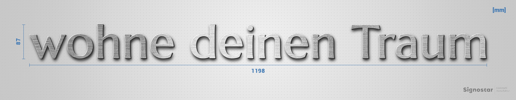 Schriftzug "wohne deinen Traum" in Schriftart "Eternitas", Edelstahl V2A gebürstet - hochwertig & wetterbeständig