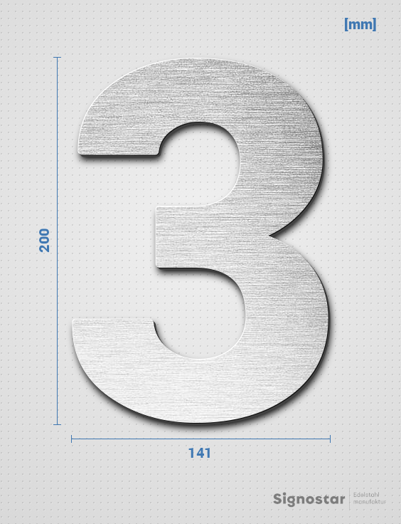 Schriftzug "3" in Schriftart "Sans", Edelstahl V2A gebürstet - hochwertig & wetterbeständig