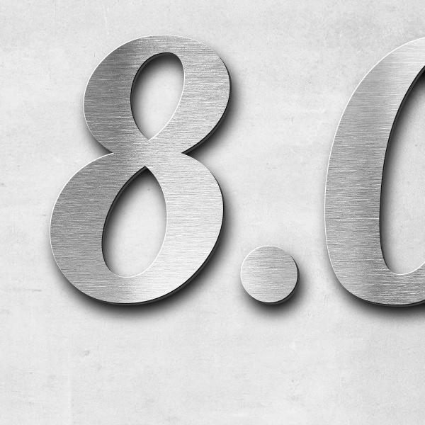 Schriftzug "8.02.1955" in Schriftart "Catdog", Edelstahl V2A gebürstet - hochwertig & wetterbeständig