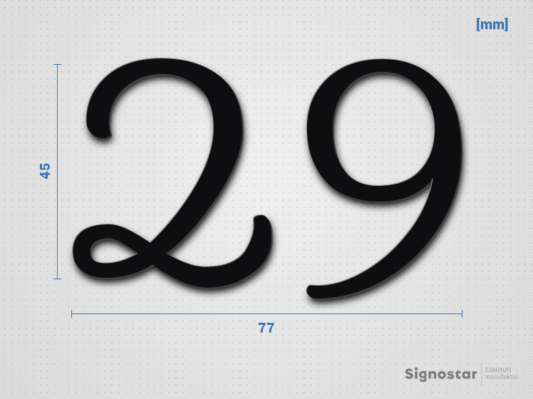 High-quality, weather-resistant lettering "29" made of powder-coated Stainless steel V2A (1.4301)