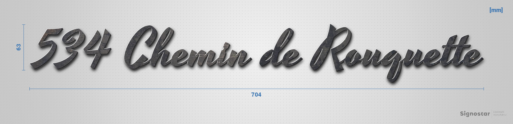 Lettering "534 Chemin de Rouquette", corten steel untreated - high quality & weather resistant