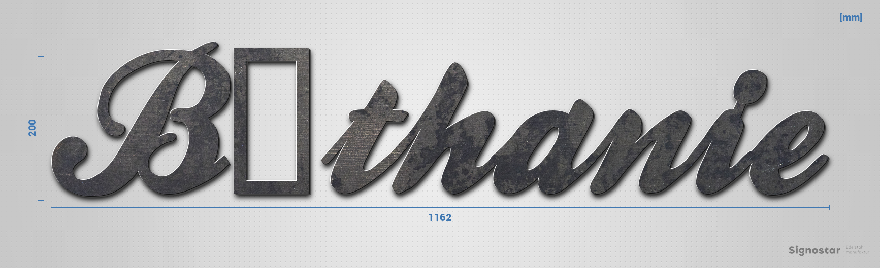 Lettering "Béthanie", corten steel untreated - high quality & weather resistant