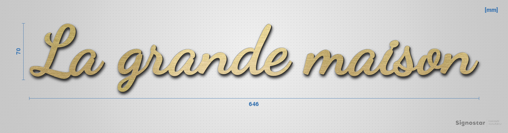 Lettering "La grande maison", acrylic plastic in Aspect laiton brushed - high quality & weather resistant