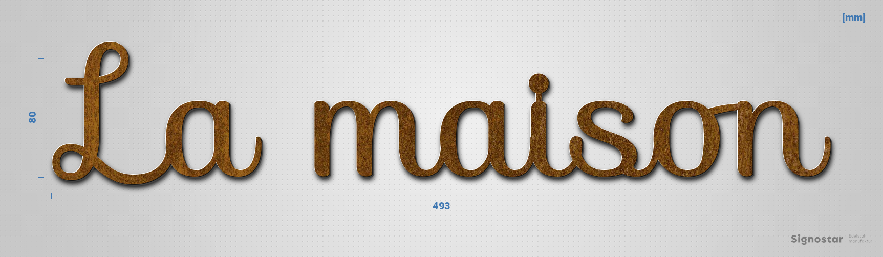 Lettering "La maison", corten steel pre-oxidised - high quality & weather resistant