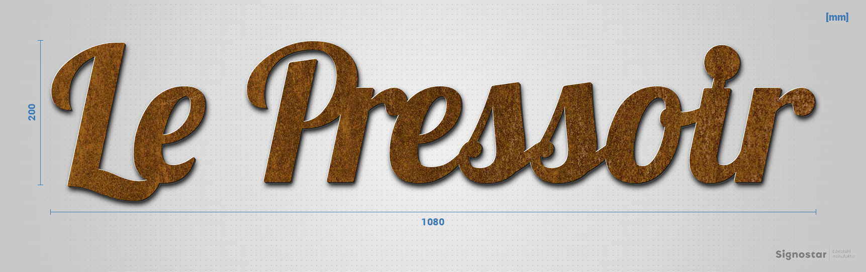 Lettering "Le Pressoir", corten steel pre-oxidised - high quality & weather resistant