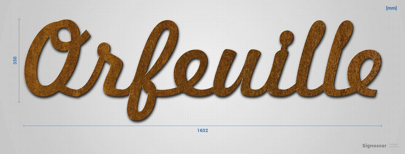 Lettering "Orfeuille", corten steel pre-oxidised - high quality & weather resistant