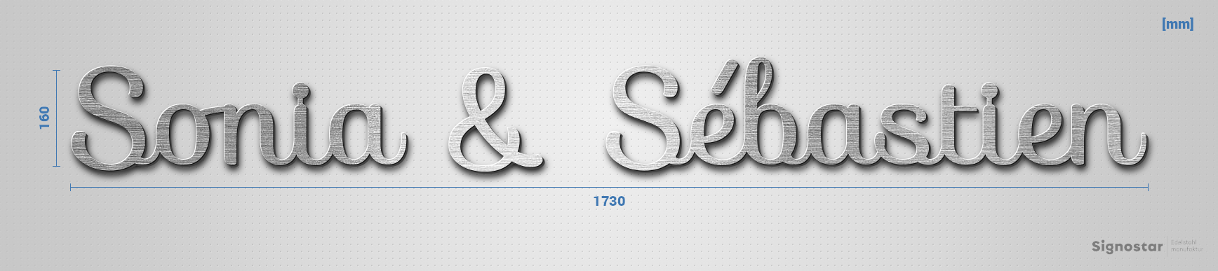 Lettering "Sonia & Sébastien", stainless steel V2A brushed - high quality & weather resistant