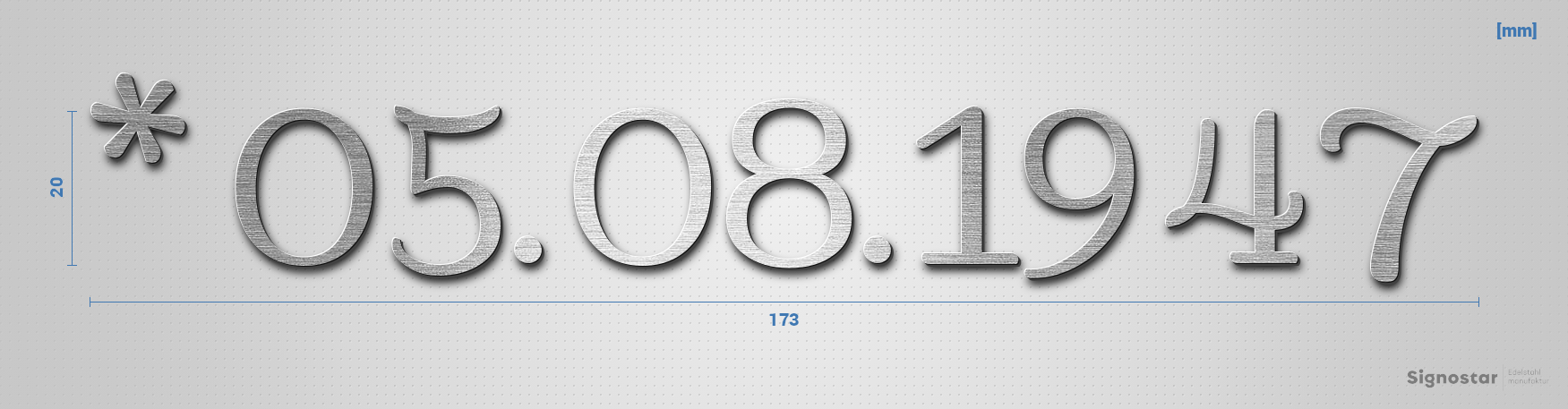 Schriftzug "*05.08.1947" in Schriftart "Autumna", Edelstahl V2A gebürstet - hochwertig & wetterbestä