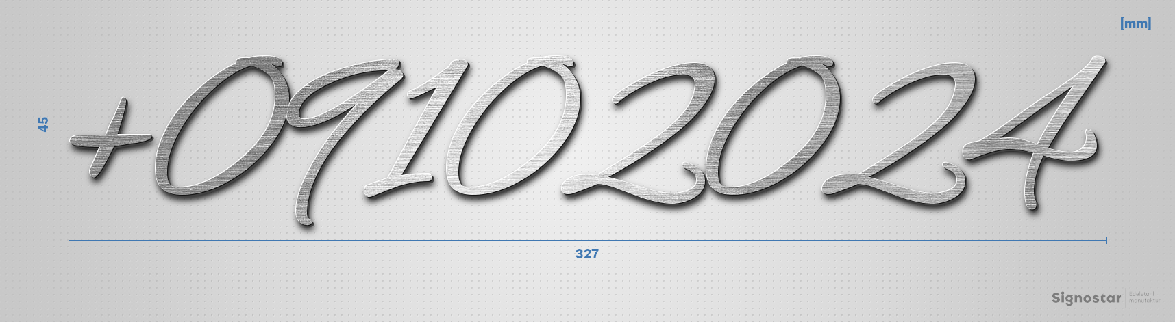Schriftzug "+09102024" in Schriftart "Jessari", Edelstahl V2A gebürstet - hochwertig & wetterbeständ
