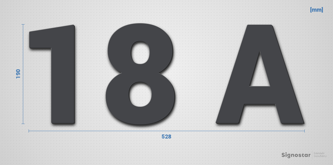 Schriftzug "18 A" in Schriftart "Sans", Edelstahl V2A pulverbeschichtet - hochwertig & wetterbeständ