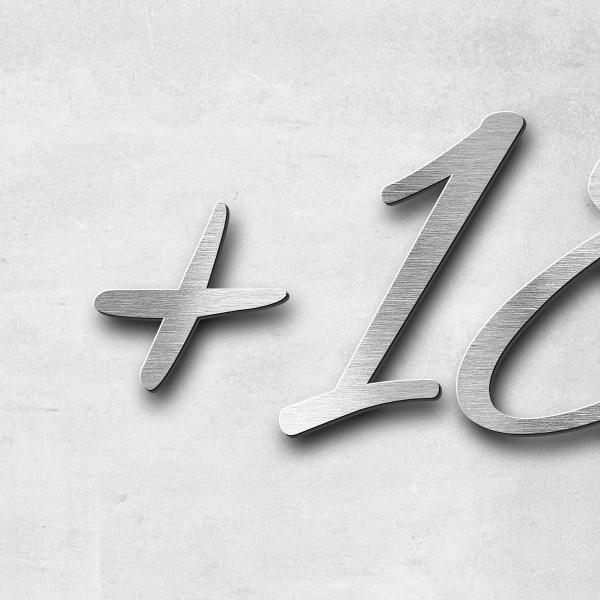 Schriftzug "+18.12.06" in Schriftart "Jessari", Edelstahl V2A gebürstet - hochwertig & wetterbeständ