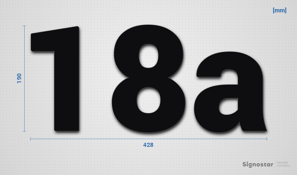 Schriftzug "18a" in Schriftart "Sans", Edelstahl V2A pulverbeschichtet - hochwertig & wetterbeständi