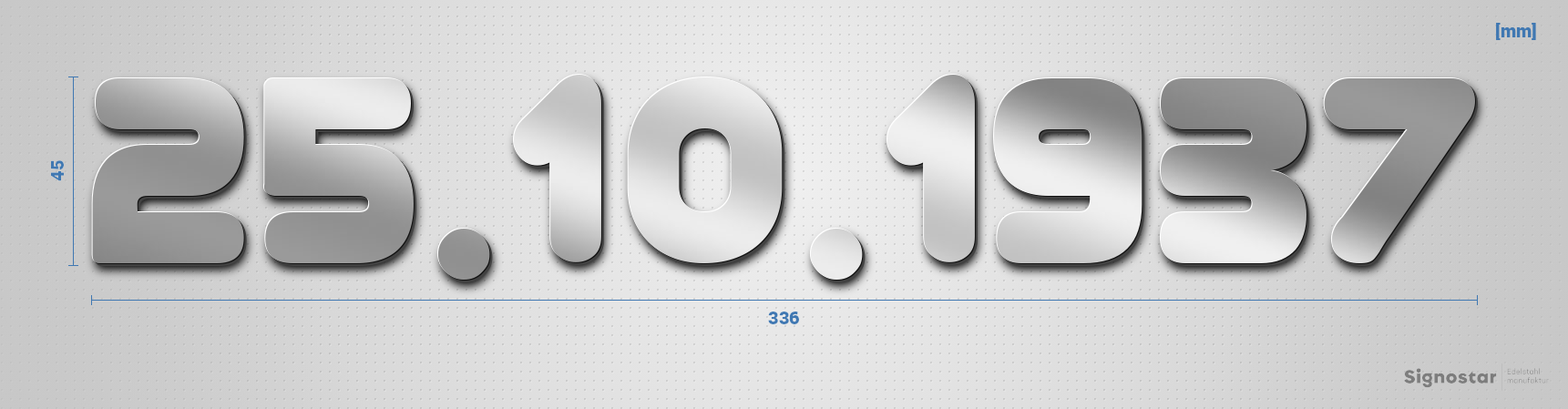 Schriftzug "25.10.1937" in Schriftart "Capital", Edelstahl V2A spiegelpoliert - hochwertig & wetterb