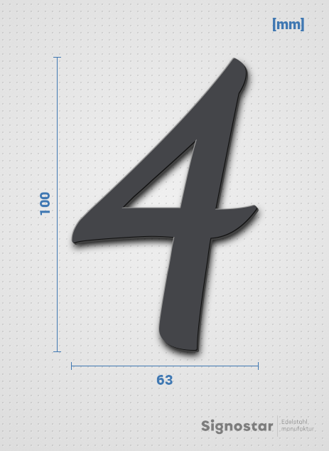 Hochwertiger, witterungsbeständiger Schriftzug "4" aus pulverbeschichtetem Edelstahl V2A (1.4301)