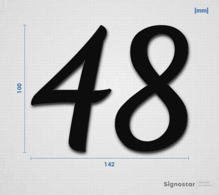 Schriftzug "48" in Schriftart "Filigrano", Edelstahl V2A pulverbeschichtet - hochwertig & wetterbest