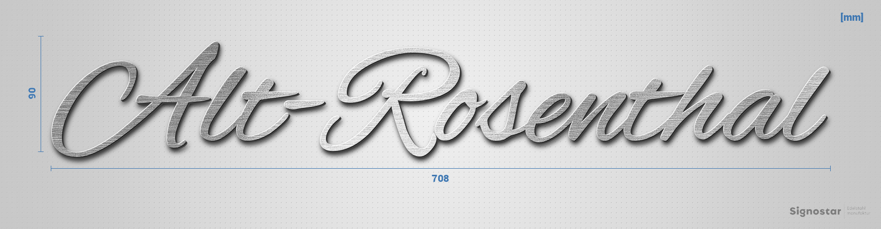 Schriftzug "Alt-Rosenthal" in Schriftart "Jessari", Edelstahl V2A gebürstet - hochwertig & wetterbes