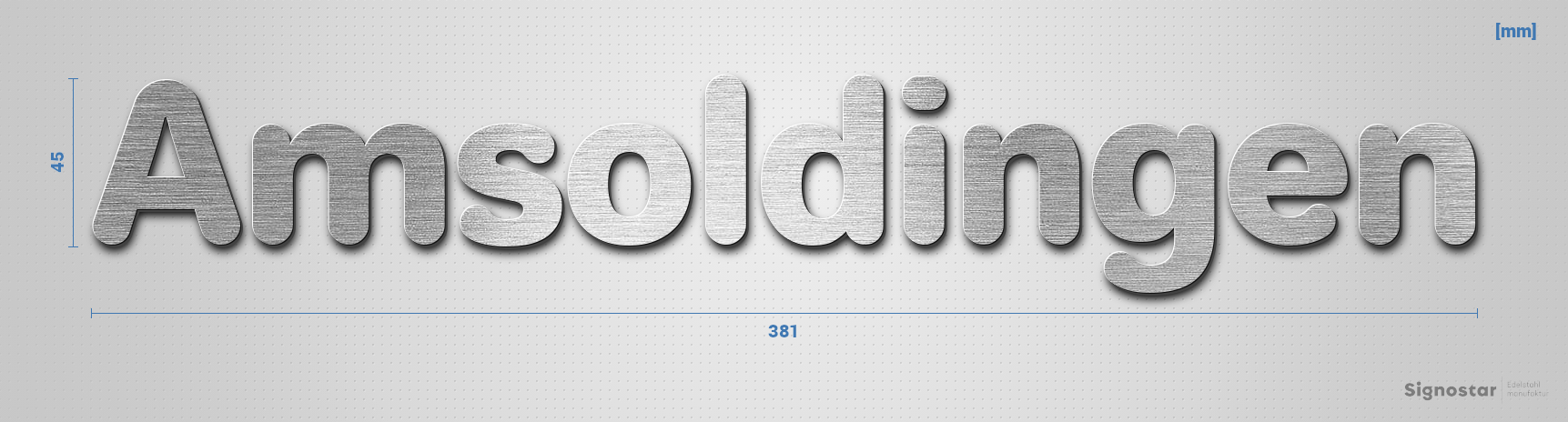 Hochwertiger, witterungsbeständiger Schriftzug "Amsoldingen" aus gebürstetem Edelstahl V2A (1.4301)