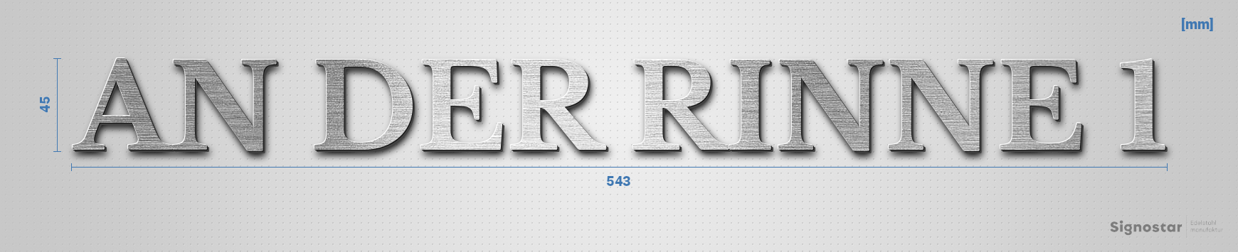 Schriftzug "AN DER RINNE 1" in Schriftart "Serif", Edelstahl V2A gebürstet - hochwertig & wetterbest