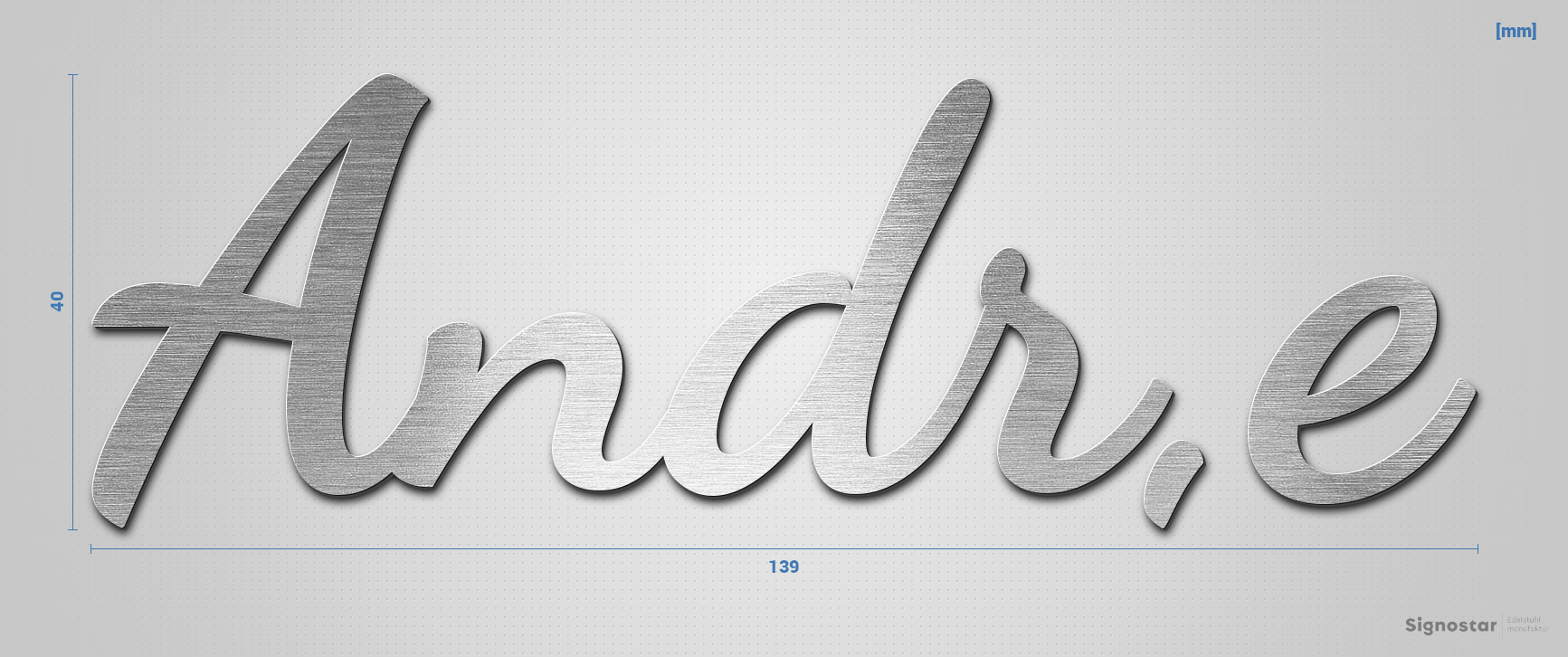 Schriftzug "Andr,e" in Schriftart "Filigrano", Edelstahl V2A gebürstet - hochwertig & wetterbeständi