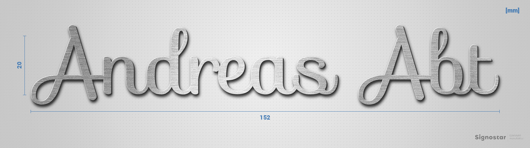 Schriftzug "Andreas Abt" in Schriftart "Autumna", Edelstahl V2A gebürstet - hochwertig & wetterbestä