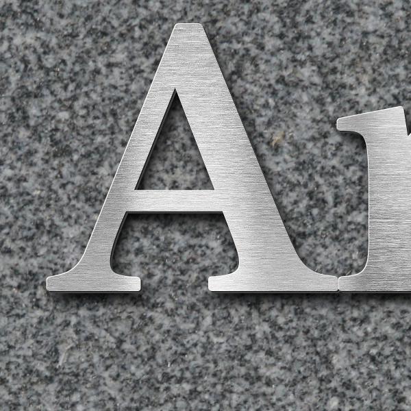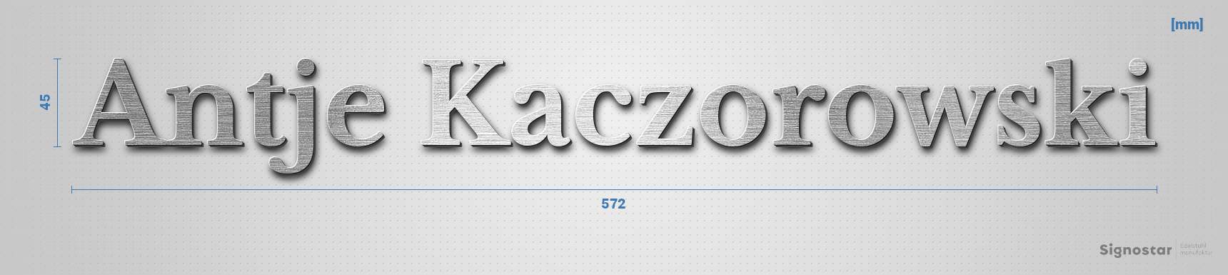 Schriftzug "Antje Kaczorowski" in Schriftart "Serif", Edelstahl V2A gebürstet - hochwertig & wetterb