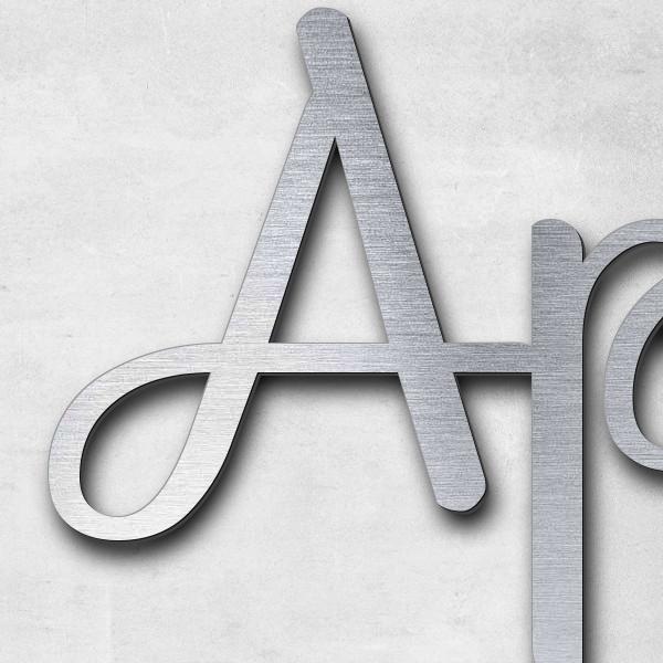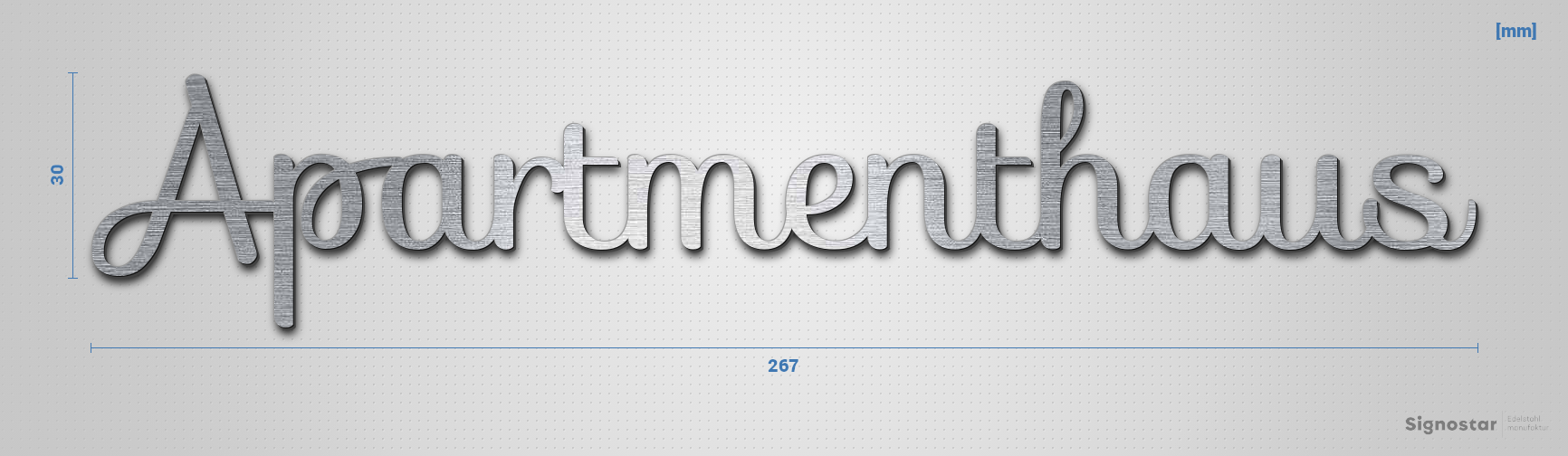 Hochwertiger, witterungsbeständiger Schriftzug "Apartmenthaus" aus Acryl-Kunststoff mit Oberfläche in Edelstahl-Optik, gebürstet