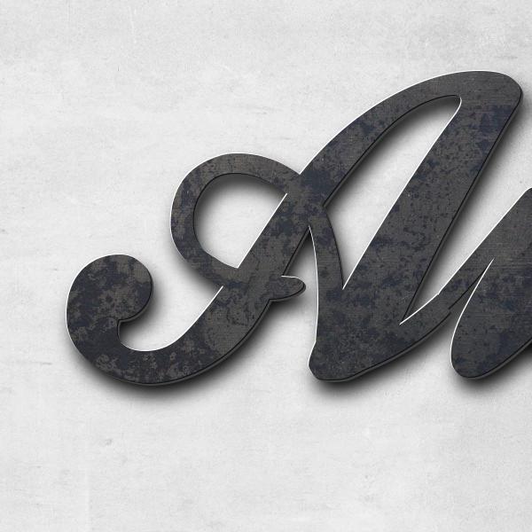 Schriftzüge bis zu einer Breite von 80cm stellen wir aus Edelstahl mit einer Materialstärke von 2mm her. Für größere Schriftzüge verwenden wir 3mm dicken Edelstahl. Auf Wunsch fertigen wir auch kleinere Schriftzüge mit einer Materialstärke von 3mm an.
