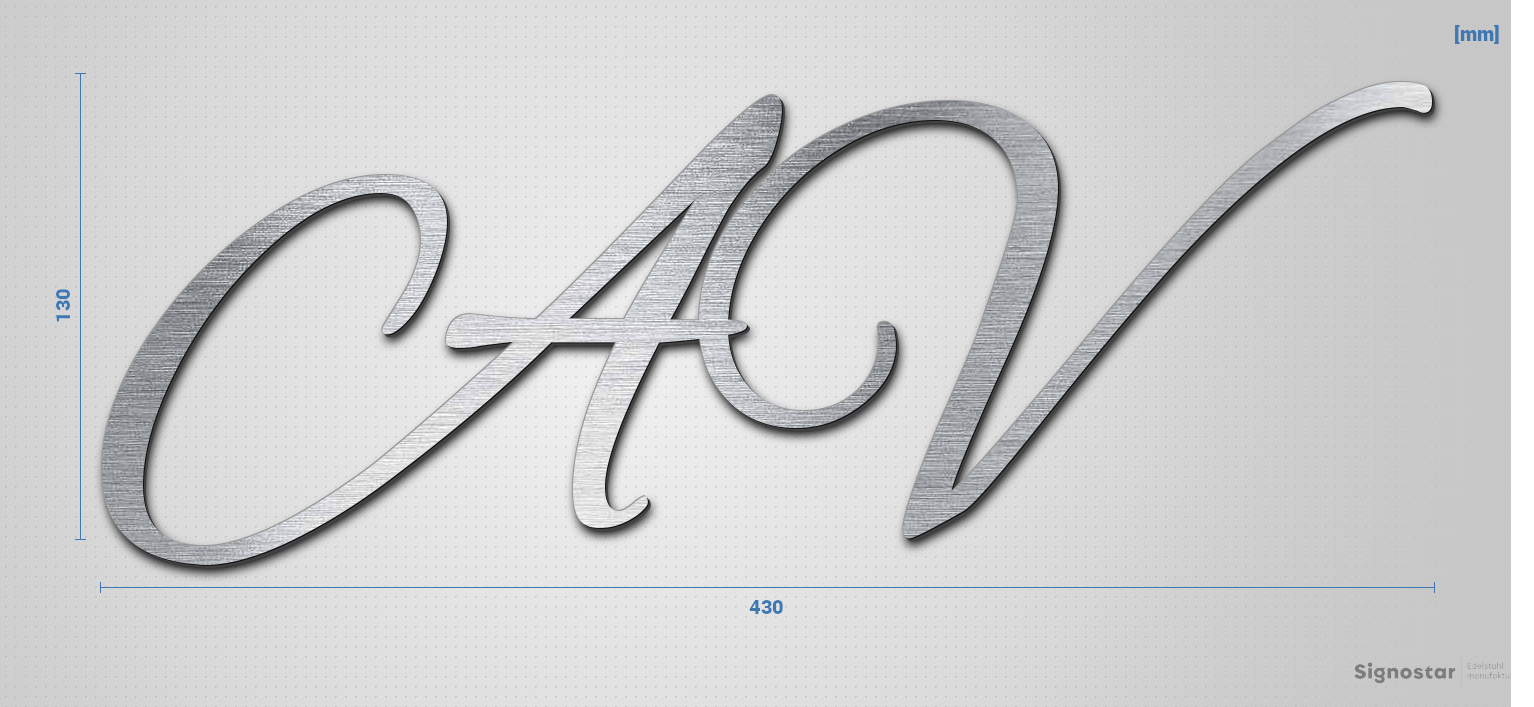 Schriftzug "AV" in Schriftart "Jessari", Acryl-Kunststoff in Edelstahl-Optik gebürstet - hochwertig