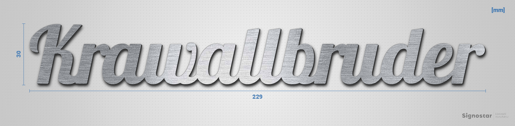 Hochwertiger, witterungsbeständiger Schriftzug "Krawallbruder" aus Acryl-Kunststoff mit Oberfläche in Edelstahl-Optik, gebürstet