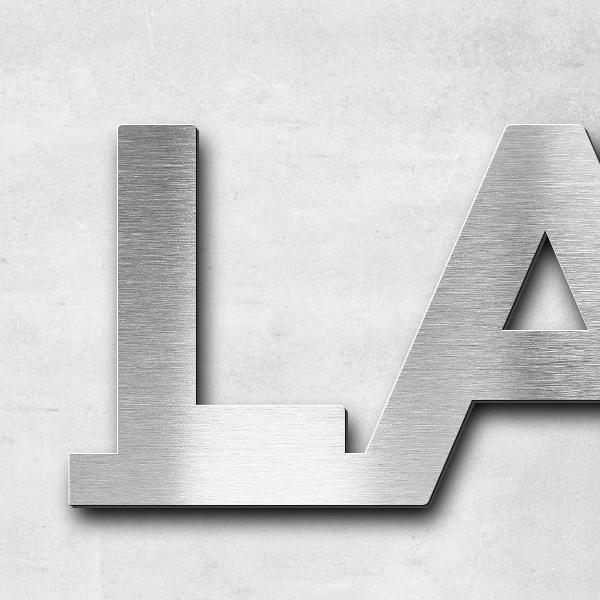 Schriftzüge bis zu einer Breite von 80cm stellen wir aus Edelstahl mit einer Materialstärke von 2mm her. Für größere Schriftzüge verwenden wir 3mm dicken Edelstahl. Auf Wunsch fertigen wir auch kleinere Schriftzüge mit einer Materialstärke von 3mm an.