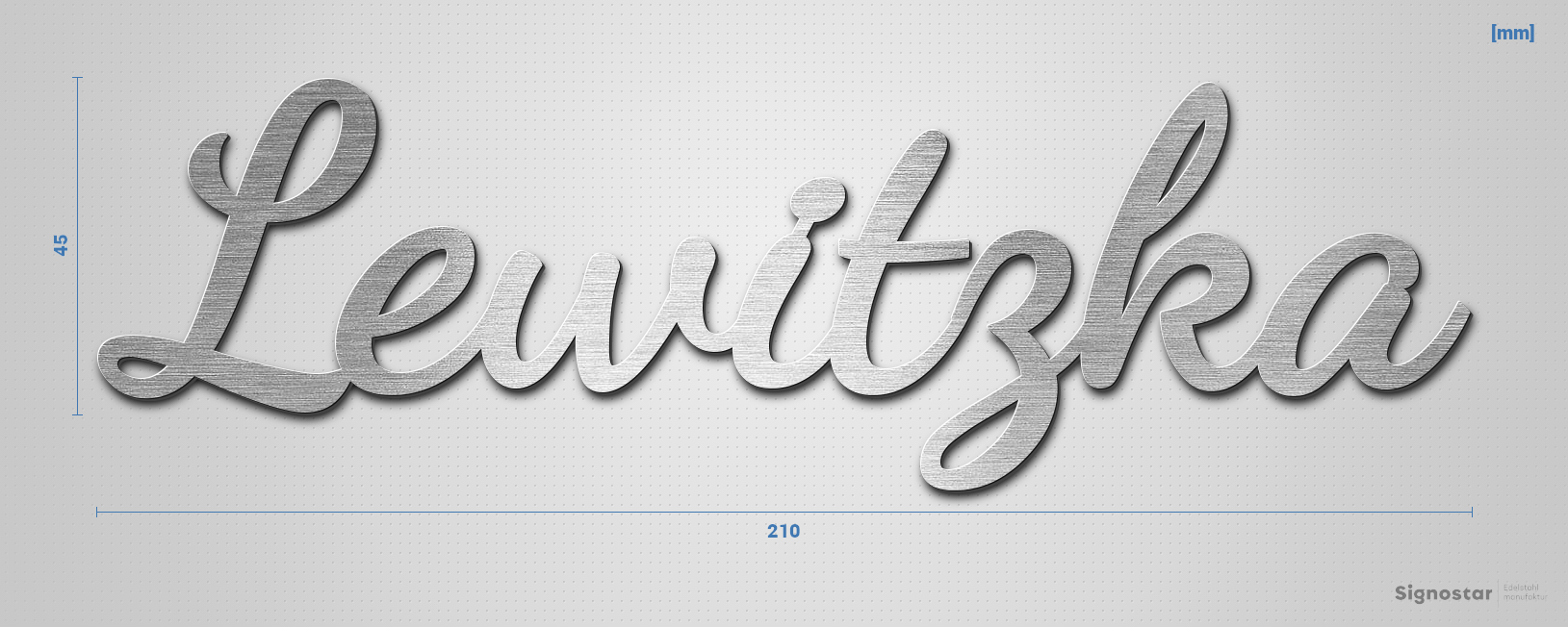 Schriftzug "Lewitzka" in Schriftart "Filigrano", Edelstahl V2A gebürstet - hochwertig & wetterbestän