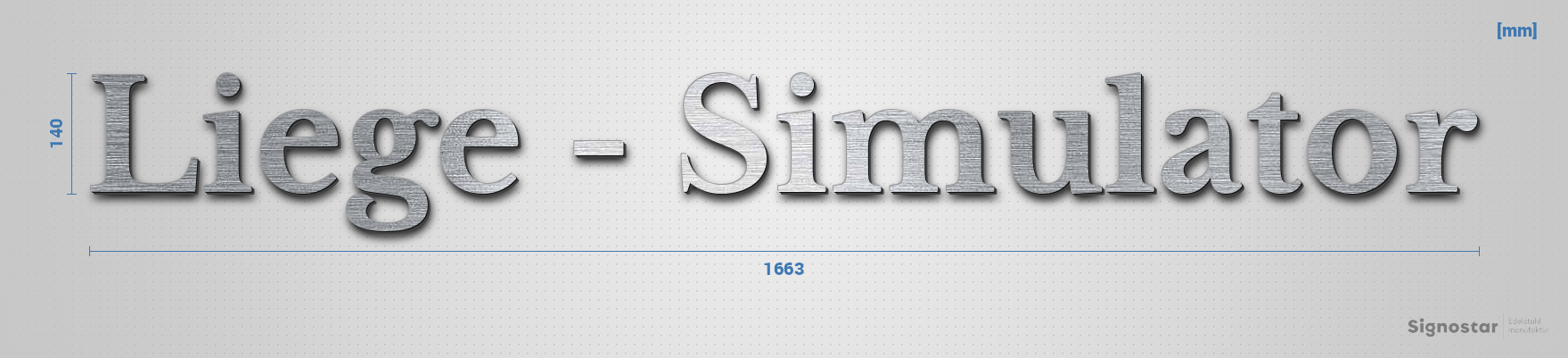 Hochwertiger, witterungsbeständiger Schriftzug "Liege - Simulator" aus Acryl-Kunststoff mit Oberfläche in Edelstahl-Optik, gebürstet