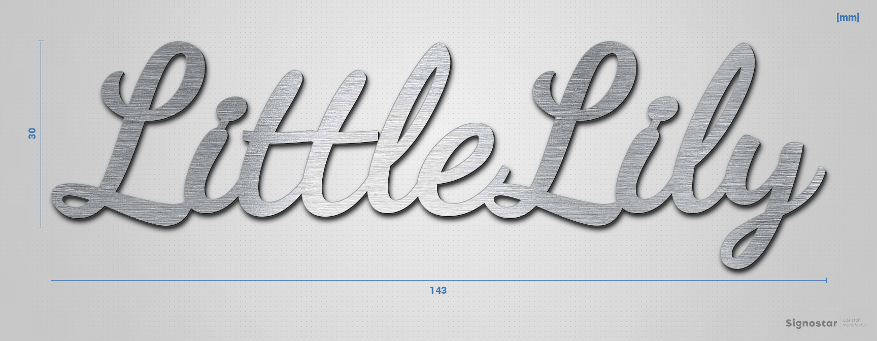 Schriftzug "LittleLily", Acryl-Kunststoff in Edelstahl-Optik gebürstet - hochwertig & wetterbeständi