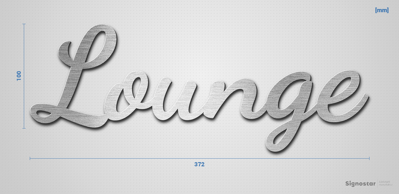 Hochwertiger, witterungsbeständiger Schriftzug "Lounge" aus gebürstetem Edelstahl V2A (1.4301)