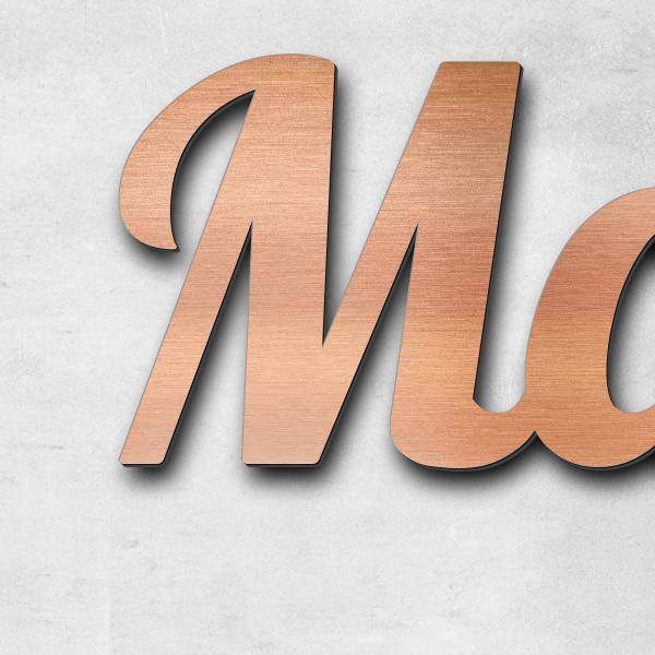 Schriftzug "Manfred Schuster", Acryl-Kunststoff in Kupfer-Optik gebürstet - hochwertig & wetterbestä