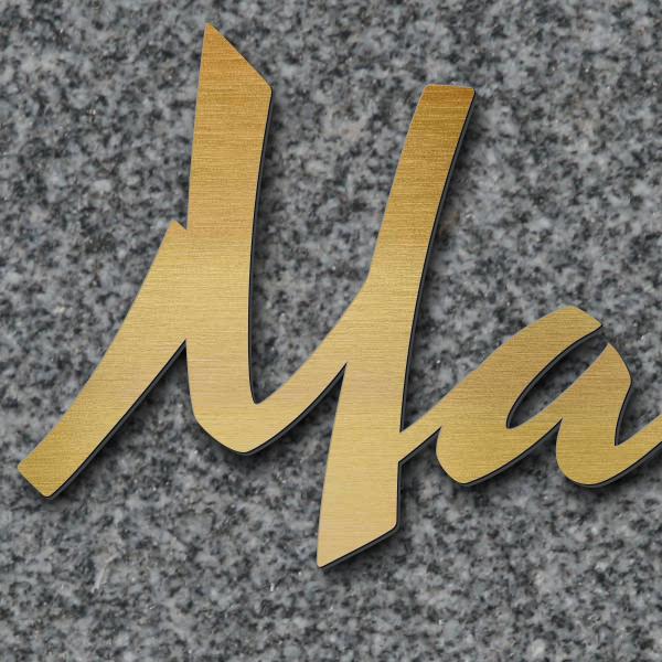 Schriftzug "Maria Krämer", Acryl-Kunststoff in Messing-Optik gebürstet - hochwertig & wetterbeständi