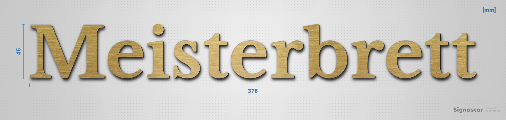 Schriftzug "Meisterbrett", Acryl-Kunststoff in Messing-Optik gebürstet - hochwertig & wetterbeständi