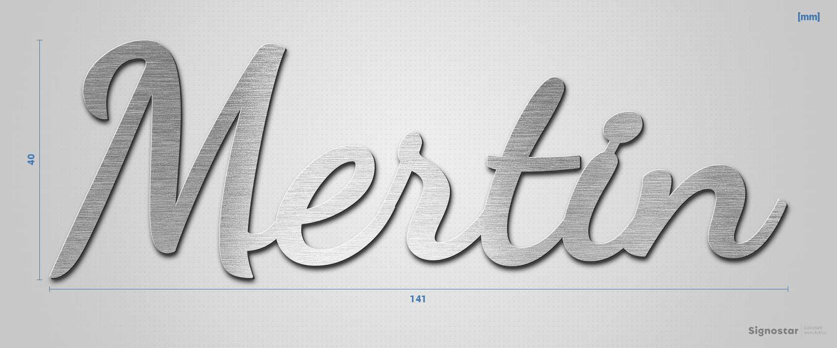 Schriftzug "Mertin" in Schriftart "Filigrano", Edelstahl V2A gebürstet - hochwertig & wetterbeständi