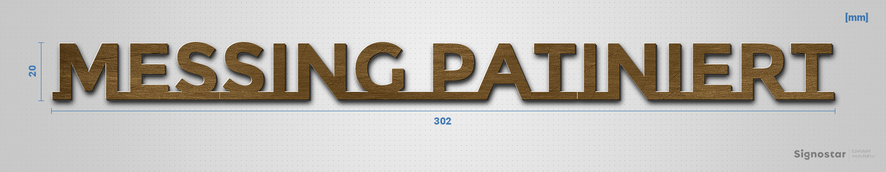 Schriftzug "Messing patiniert" in Schriftart "Baseline", Messing antik patiniert - hochwertig & wett