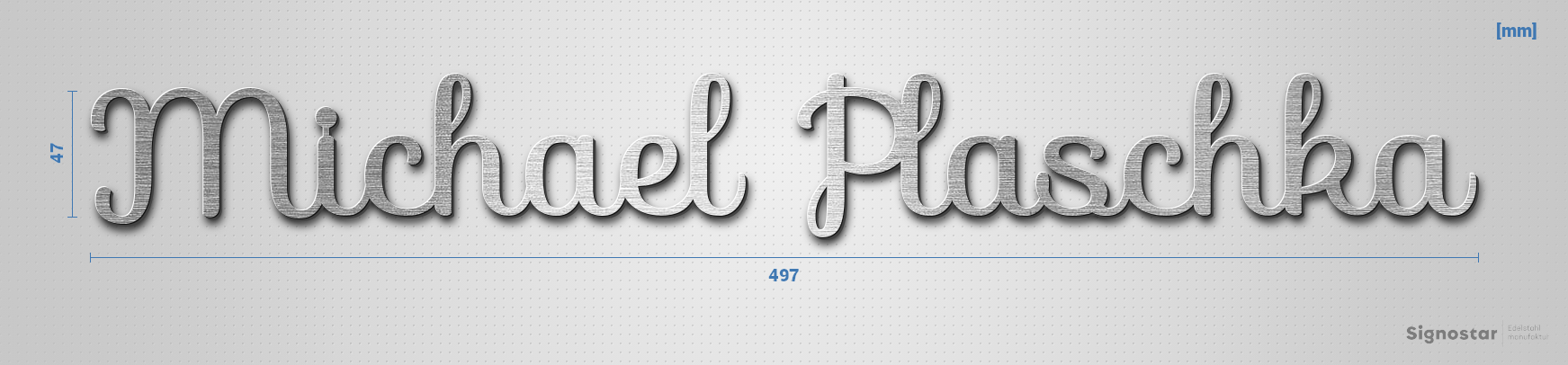 Schriftzug "Michael Plaschka" in Schriftart "Autumna", Edelstahl V2A gebürstet - hochwertig & wetter