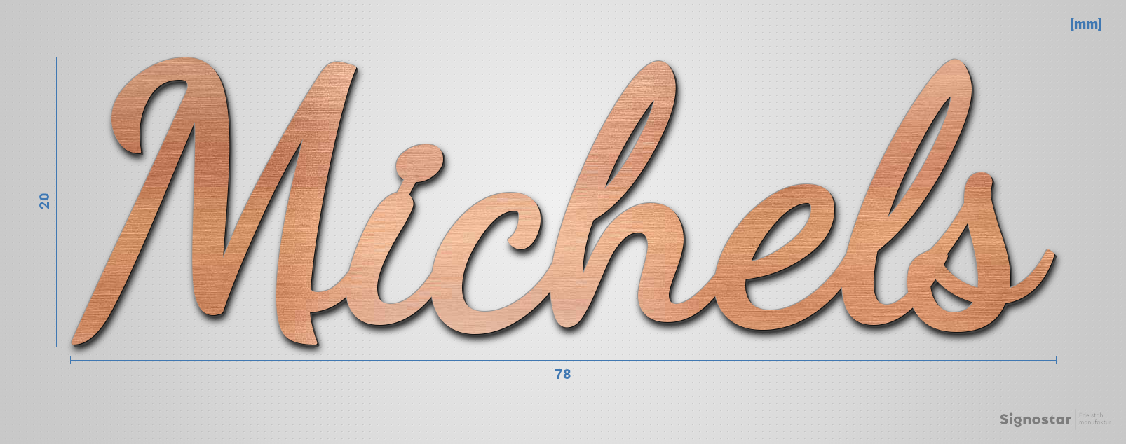 Schriftzug "Michels" in Schriftart "Filigrano", Acryl-Kunststoff in Kupfer-Optik gebürstet - hochwer