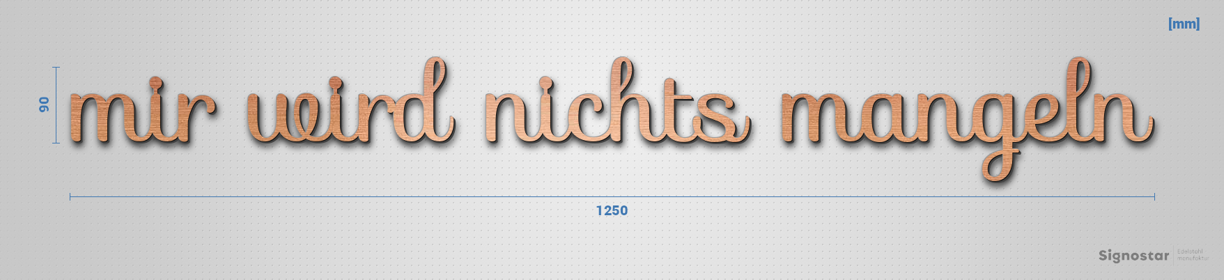 Schriftzug "mir wird nichts mangeln" in Schriftart "Autumna", Acryl-Kunststoff in Kupfer-Optik gebür