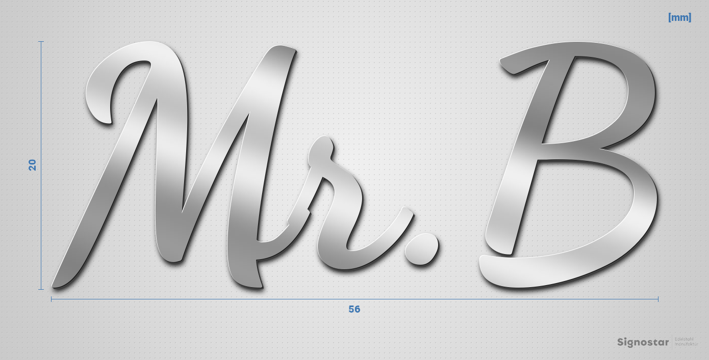Schriftzug "Mr.B" in Schriftart "Filigrano", Edelstahl V2A spiegelpoliert - hochwertig & wetterbestä
