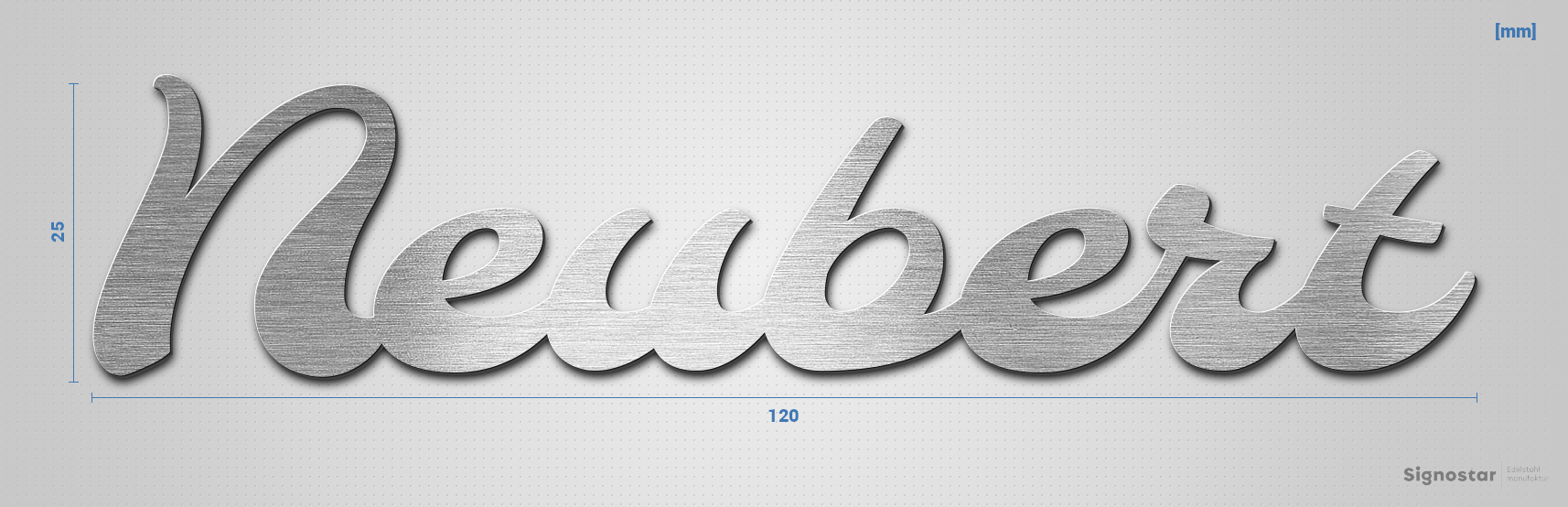 Hochwertiger, witterungsbeständiger Schriftzug "Neubert" aus gebürstetem Edelstahl V2A (1.4301)