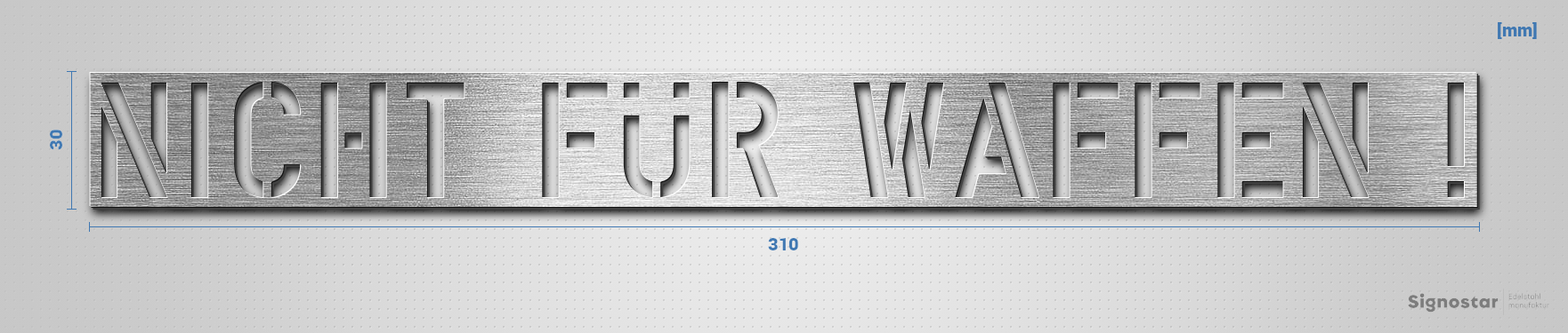 Schriftzug "NICHT FÜR WAFFEN !" in Schriftart "Blash", Edelstahl V2A gebürstet - hochwertig & wetter