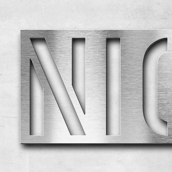Schriftzüge bis zu einer Breite von 80cm stellen wir aus Edelstahl mit einer Materialstärke von 2mm her. Für größere Schriftzüge verwenden wir 3mm dicken Edelstahl. Auf Wunsch fertigen wir auch kleinere Schriftzüge mit einer Materialstärke von 3mm an.
